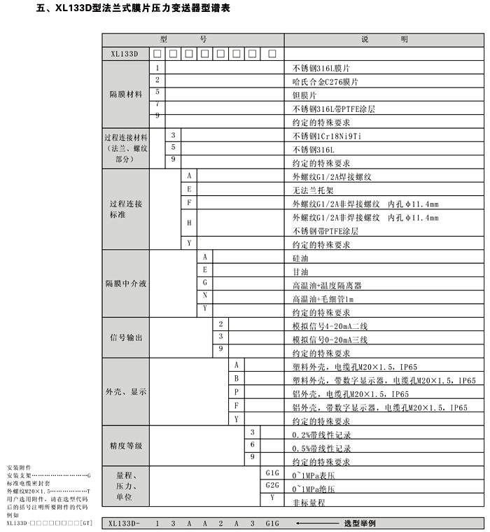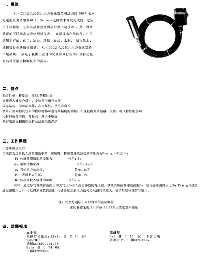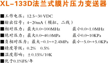 XL-133D法兰式膜片压力变送器