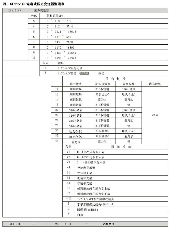 XL3051GP单晶硅压力变送器