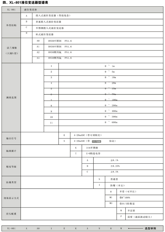 XL-801B普通投入式液位变送器