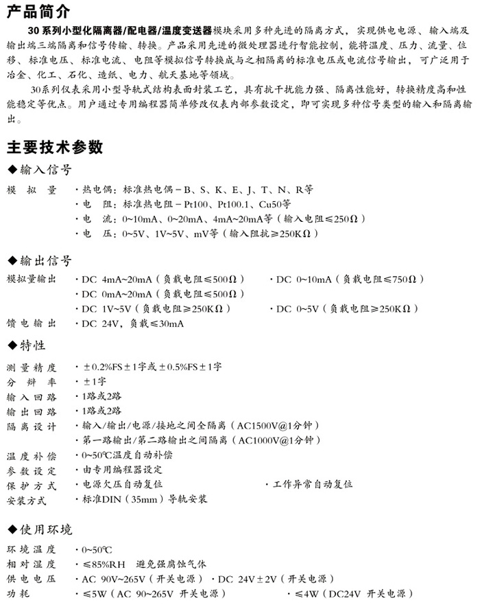 XWP30系列小型温度变送器/隔离器/配电器