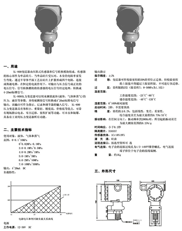 XL-800A扩散硅压力变送器